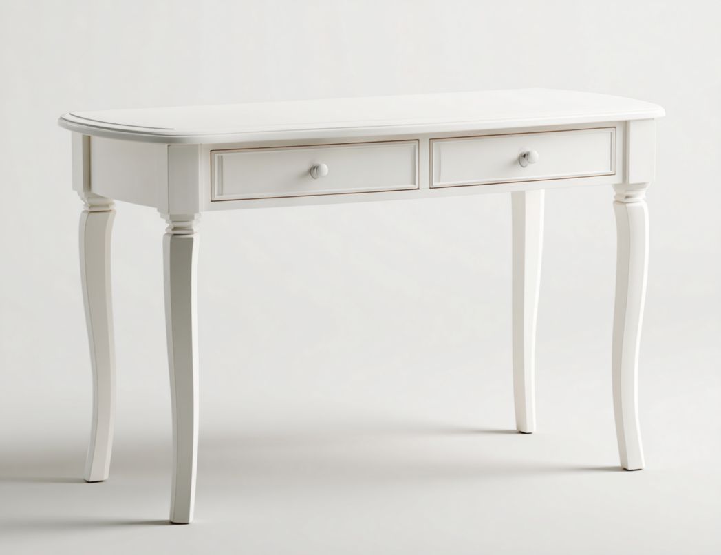 Bureau en bois blanc avec double tiroir et plateau aux bords arrondis€110,70