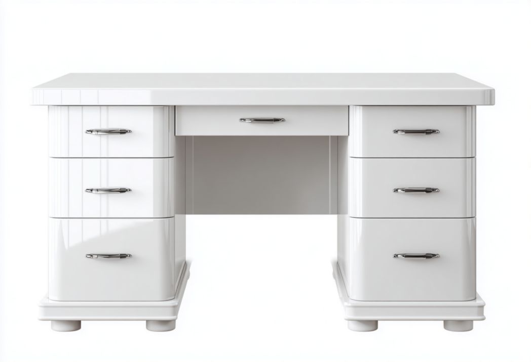 Bureau blanc avec multiples tiroirs et rangements latéraux€122,96