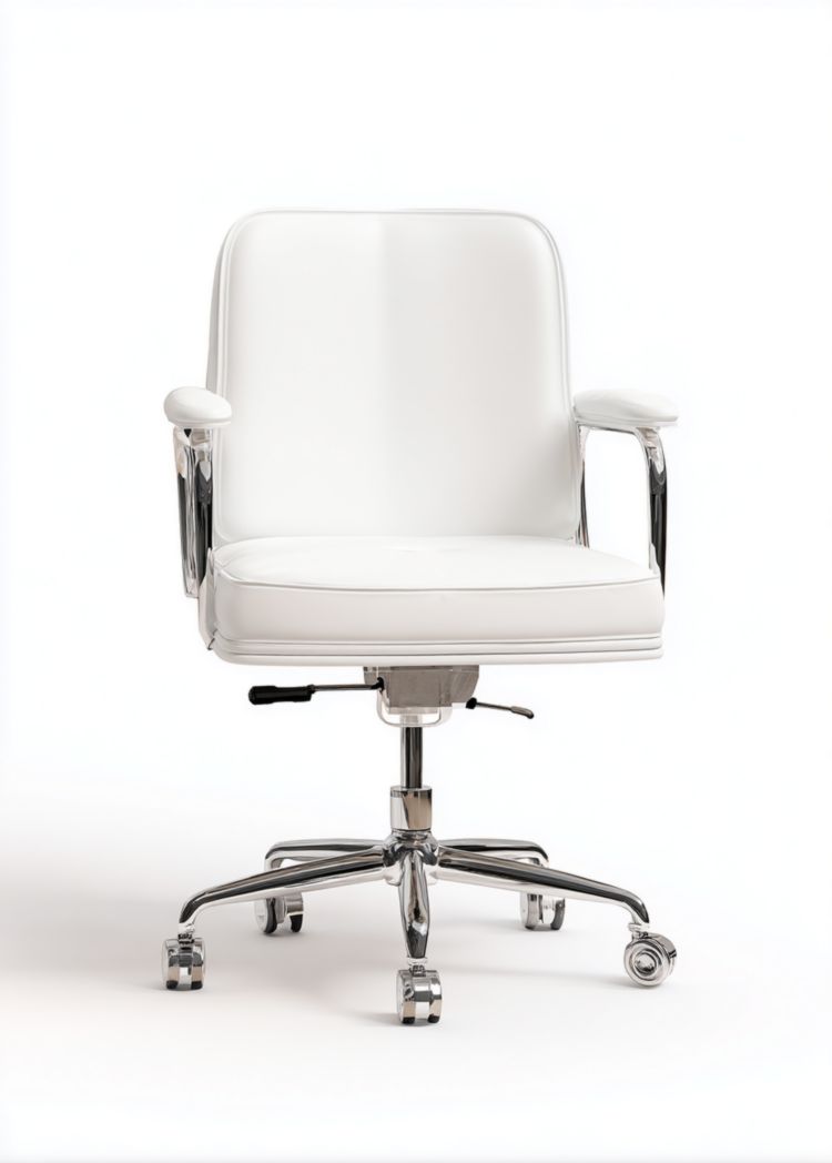 Chaise de bureau pivotante rembourrée blanche avec base en métal chromé et accoudoirs€67,05