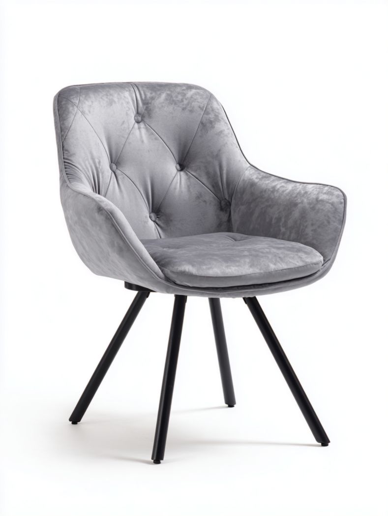 Fauteuil en velours gris clair avec pieds en métal noir€87,15