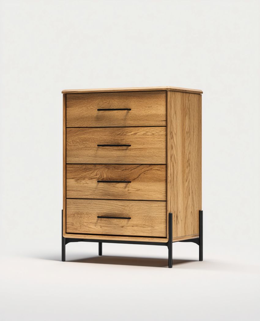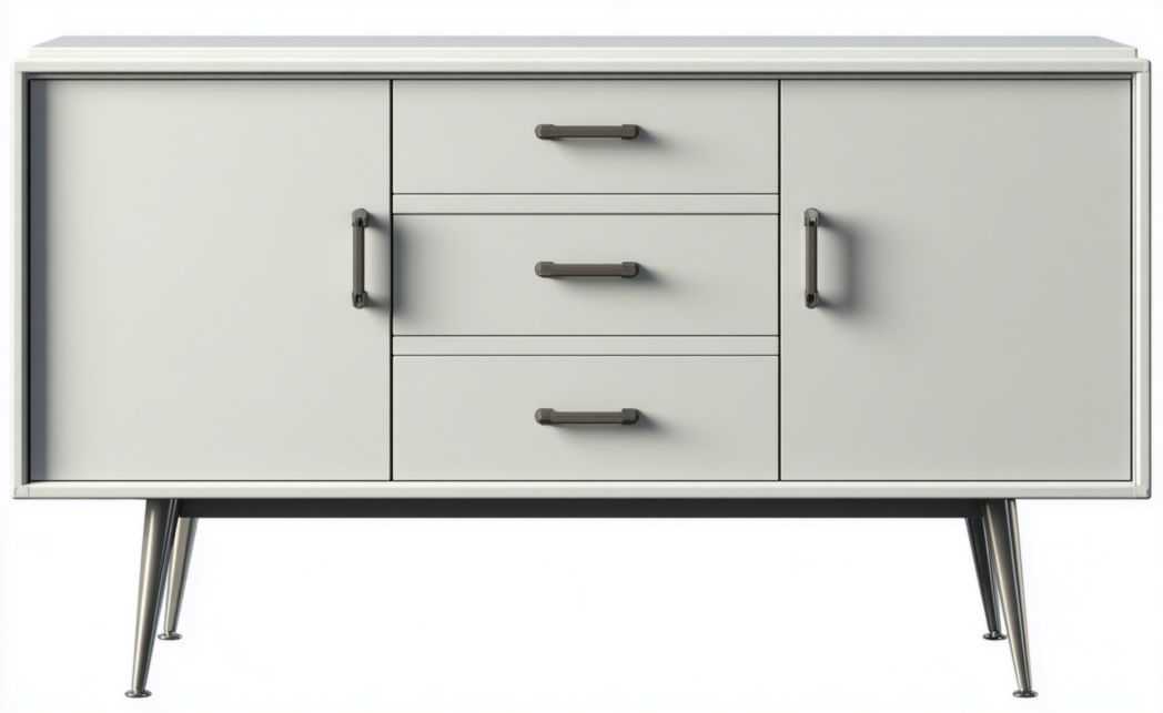 Buffet à deux portes et trois tiroirs avec pieds métalliques€134,66