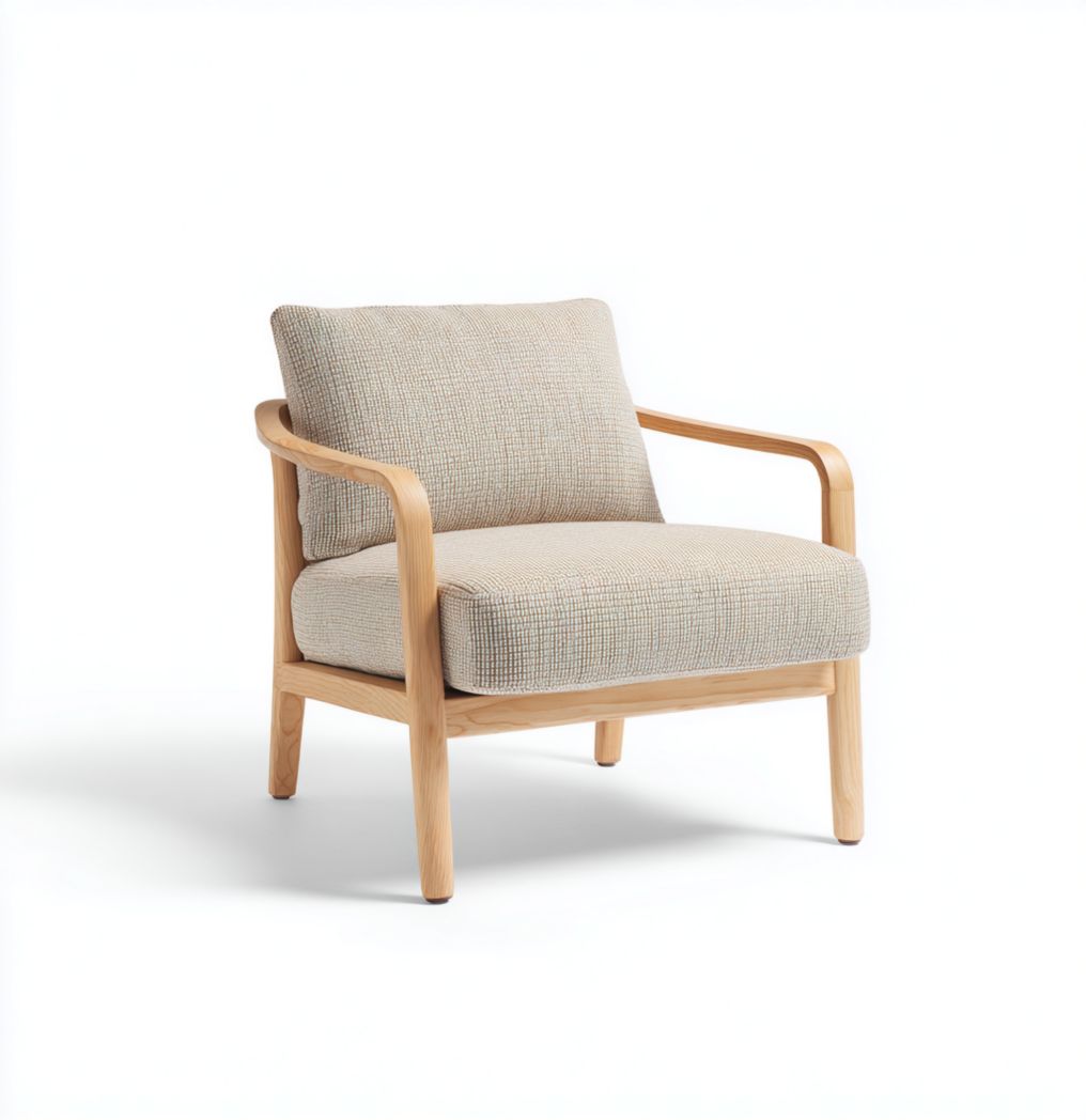 Couleur : Assise et dossier beige, accoudoirs, structure et pieds marron