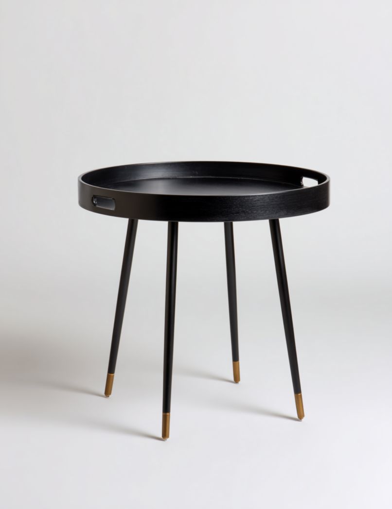 Couleur : Plateau noir, pieds noirs, extrémités des pieds en doré